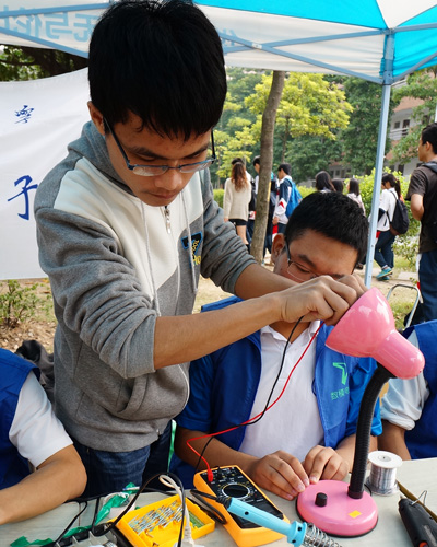本网讯 11月23日,思科太阳城娱乐Light志协及华工数模电子协会在南校举办了为期一天的电脑及电器义修活动。本次活动分为电脑上门义修以及电器现场义修两部分。其中电脑义修由Light志协义修队负责,电器现场义修则由华工志愿者完成。
