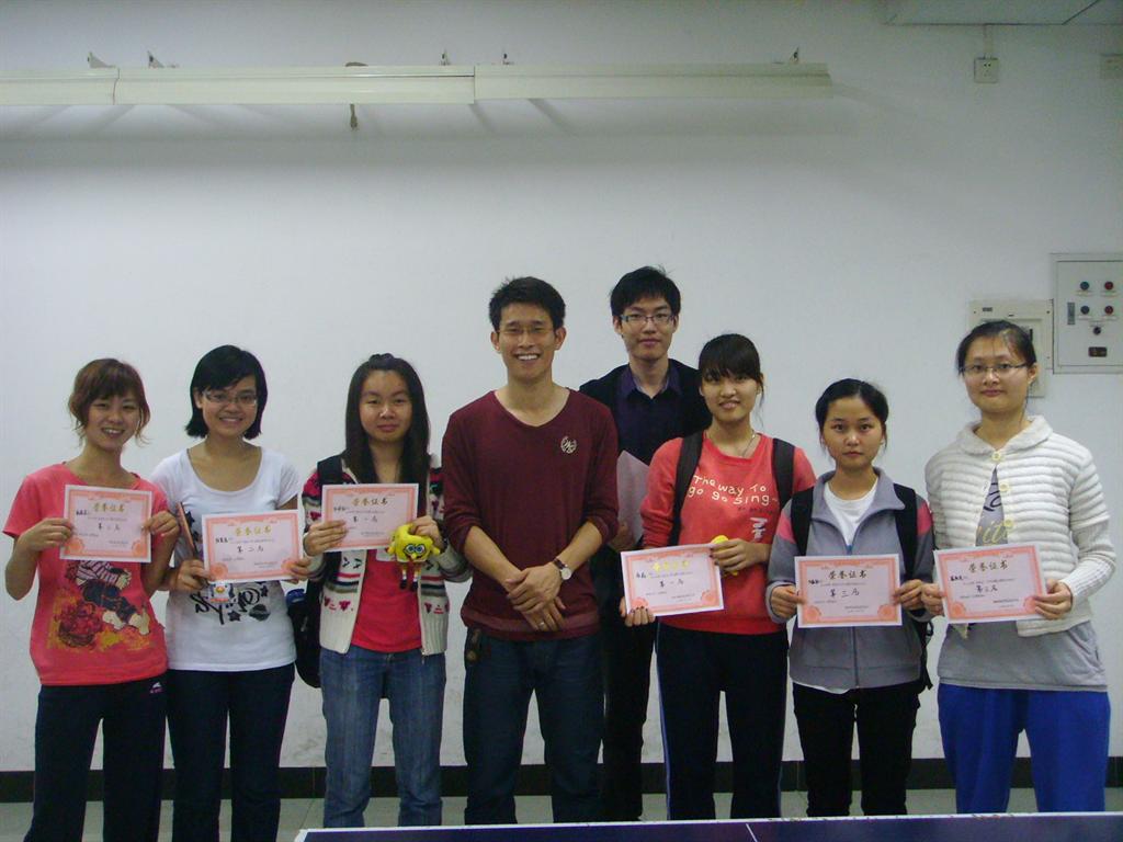 本网讯 4月29日晚上六点半,“信息杯”乒乓球赛在教学楼D栋举行。百余名来自各班的选手参加了这次比赛,经过长达三个小时的较量,男单、女单、男双、女双四个项目悉数决出了胜负。