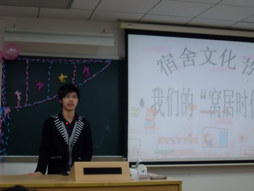 会场悬挂着气球、彩带等装饰,布置得温馨简约。应主持人邀请,苏剑峰做了简洁的致辞,表示宿舍文化节是团委员工会在本学期的组织的第一次大型活动,文化节有利于促进宿舍之间、同学之间的沟通。
