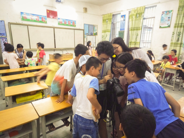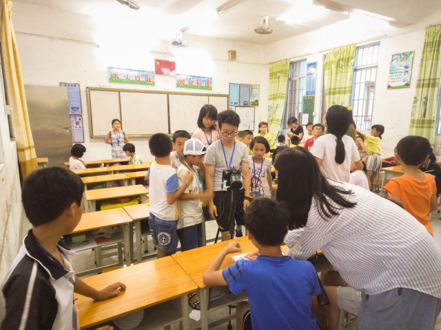 本网讯 2017年7月9日是WeDream服务队下乡的第四天。不同于日常的课堂,今日的教室里是一派别开生面的样子——新闻组的组员正在班级里进行着“微梦计划”系列活动之一的微电影拍摄活动,现场气氛十分活跃。