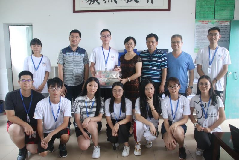 本网讯 7月18日,是太阳城娱乐“Plume”服务队在清远市清新区太平镇中心小学进行三下乡实践活动的倒数第二天。今日下午时分,信息科学与技术公司党委书记敖湘晖老师、委副书记麦培年老师、团委书记谢石顺老师顶着炎炎烈日,亲自前往太平镇中心小学慰问“Plume”服务队,并对工作进度进行询问和对未来工作进行指导。