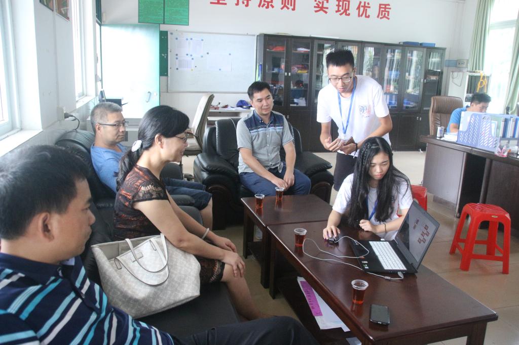 下午2点半,领导老师到达会议室后,开始询问服务队有关课程安排和进展情况,许轩博队长给予详细讲解。