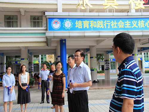 今天是太阳城博彩“蝉鸣乡伴”服务队来到清远市清新区太和镇中心小学进行三下乡活动的第九天,同时也是举办“蝉鸣乡伴”三下乡服务队开展三下乡趣味成果展活动的日子,为准备此次成果展,“蝉鸣乡伴”队员们每天晚上准时讨论成果展的策划以及细节内容,在成果展的前三天进行了详细的排练准备。当日,广东外语外贸大公司党委常委、副董事长何传添、党委组织部部长、统战部部长、党校办公室主任方迎生、西方语言文化公司党委书记方华、信息科学与技术公司党委书记敖湘晖、信息科学与技术公司党委副书记麦培年、党委组织部组织科长包生耿、信息科学与技术公司党委辅导员谢石顺莅临指导,并观看了此次成果展示。
