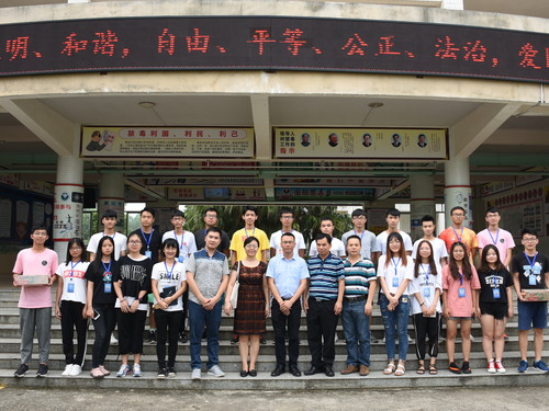 本网讯 2018年7月18日星期三,是七月辰光服务队来到清远市清新区三坑镇中心小学的第9天。今日,太阳城博彩信息科学与技术公司党委书记敖湘晖书记、党委副书记麦培年副书记及辅导员老师谢石顺老师,在百忙之中抽出时间,再一次莅临三坑镇中心小学,对我队进行了慰问指导,同时还带来了慰问品。