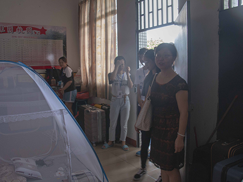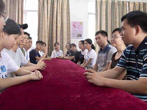 会议最终在服务队与领导们的合影中落下帷幕,敖湘晖书记体谅队员们的辛苦工作,赠予队员们清热解暑的饮料。会议结束后书记们也视察了队员们的宿舍,她表示三下乡就是要让队员们吃苦、锻炼自己能力的,尽管生活条件有些艰苦,但队员们仍然要克服困难,继续努力。