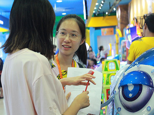而后,调研组选好路线,开始前往目的地调研。调研组在对部分育儿机构进行访谈之后,又开始新一轮的问卷调查,收集可用数据。根据实际情况和多方面因素,调研组选取了万达广场为核心,展开调研。紧跟其后,是同时负责义教组的拍摄人员。调研组组员们互相激励的斗志神情、询问路人时真诚的模样、讲解问卷和目的时候的耐心,一幕幕,是调研组调研工作最真实的模样。如梦如幻的镜头,捕捉的却是最真实的生活;柔软动人的笔触,记录下的却是最准确可信的信息。