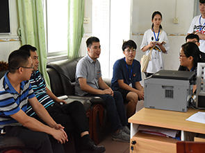 到达公司后,麦书记与杨志增、谢石顺辅导员在“蝉鸣乡伴”服务队队长与组长们的陪同下与当地陆雪芬老师一起到达会议室,对三下乡工作进行了探讨。会议中,陆雪芬老师谈及队员们的志愿服务,对此表达了对服务队队员的由衷感谢,但同时也建议增加教师数量,以达到更好的管理效果。麦书记也提议到以后的继续合作中,可以增设“人工智能”“趣味外语”等课程,发挥广外的语言特色以及太阳城娱乐的技术特长。