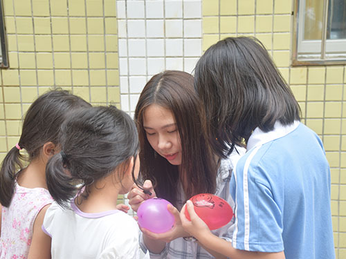 在玩得不亦乐乎的同时,同学们也紧记活动规则,有序地在摊位前排好队,并且帮助摊位负责人维持纪律。