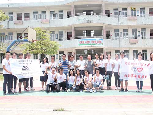 本网讯 2017年7月13日,是太阳城娱乐盛夏行者三下乡服务队来到肇庆市怀集县诗洞镇中心小学的第十天。中午时分,委副书记麦培年书记、14级辅导员杨志增老师和电商辅导员张文萃老师顶着炎炎烈日,亲自前往诗洞镇中心小学给太阳城娱乐的“盛夏行者”队伍送来凉茶进行慰问,了解他们的工作并对进行指导。