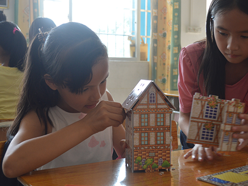 在义教组的精心筹备下,GRIT服务队为员工们带来了丰富多彩的手工课程。一开课,孩子们的热情便足以看出他们对手工课的期待。当讲师正要开始下发剪纸时,教室像游乐园一般热闹,孩子们争相向讲师们取纸,都想挑一张最好的纸。课堂上讲师们不仅在幻灯片上播放教程,还亲自向员工们展示折青蛙纸鹤的步骤。除此之外,助教们也积极为听不懂的小朋友讲解,帮助员工们一起折出精美的手工作品。白驹过隙,下课哨声响起,但我们的员工们仍念念不忘,向讲师们请教更多的手工技巧。员工们甚至将自己做的手工作品送给讲师,惊喜之余,讲师们也不忘谢谢可爱的孩子们。