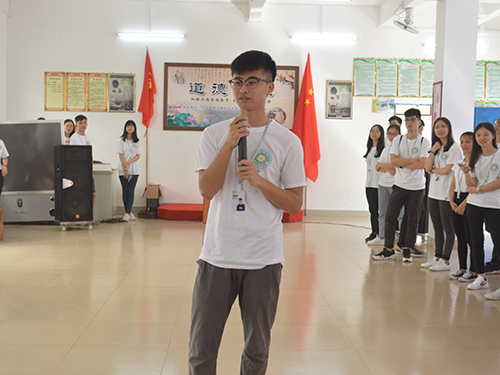 九点一到,队员便带着小朋友们有秩序地前往小礼堂参加开学典礼。朱德标董事长首先对GRIT服务队全体队员的到来表示热烈欢迎,然后简要介绍了八一希望中心小学的现状,重点强调了安全问题,他说:“一切以安全为主。同学们要注意自身安全,来回公司时不要在路上逗留。队员们要注意财产安全,贵重物品应随身携带。”最后,朱德标董事长衷心希望此次三下乡活动顺利进行。