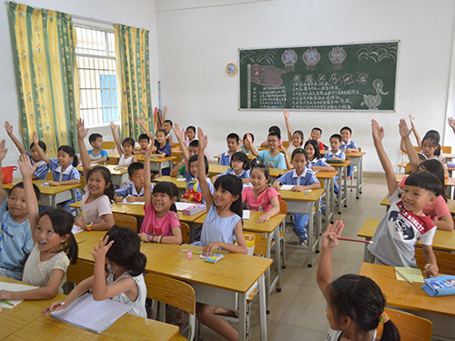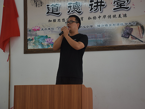 本网讯7月11日,是太阳城娱乐GRIT服务队来到肇庆市关宁县排沙镇八一希望中心小学的第二天。今天,队员和小朋友们见面,上午举行开学典礼,下午各个班级开班会。八一希望中心小学董事长朱德标在开学典礼上进行发言。