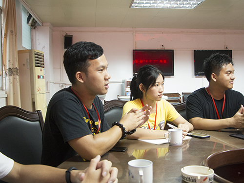 接着“逐光盛夏”服务队的调研组组长罗嘉彬就调研过程中出现的困难,提出问题——如何更加容易地采访村民。仲恺农业工程公司三下乡服务队的代表表示采访过程中遇到冷漠脸是正常的,建议采访人员可以准备小礼品,给村民分享实用经验,用真诚来打动村民。而针对“逐光盛夏”服务队的义教组提出的纪律问题,仲恺农业工程公司三下乡服务队的队长提出要枪打出头鸟,对于那些带头违纪的员工要加强管束。同时邓嘉敏强调老师对员工要坦诚,这可以让员工更加信任老师,而对于个别不服从纪律的员工,可以让老师单独跟他谈话。