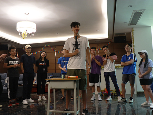开场的猜歌游戏采用三首同时播放的歌曲音频为题目。虽然歌曲皆属于风靡一时的流行音乐,但几轮游戏下来队员们发现,要在不受其他旋律影响的条件下准确猜出歌名其实是一件不容易的事。部分同学的突出表现展露了他们丰富的歌单,现场连连爆发出赞叹声。新颖的猜歌形式和富有节奏的音乐的加入使得现场气氛一下子活跃了起来,队员们渐渐开始期待接下来的游戏环节。