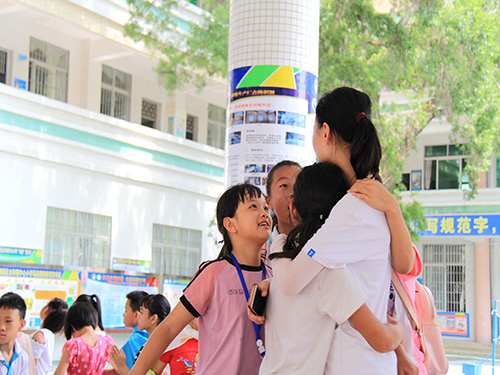 在离别之际,“蝉鸣乡伴” 员工们和队员们都感触良多,道出了这十天的感受。对于员工来说,主要接触的是“蝉鸣乡伴”义教组的队员,十天的朝夕相处早已使他们喜欢上了授课的大哥哥和大姐姐。“我喜欢马老师,因为她很温柔。”“我喜欢安俐老师,因为她很漂亮而且人也很好。”“我喜欢所有老师……”员工们七嘴八舌地抢着说道,说完后便过去抱着老师,天真可爱的他们毫不吝啬表达着对老师的喜爱。一个文静的小女孩轻声说着:“老师们辛苦了,希望以后还能见到老师们。”“老师教会了我很多新的知识,谢谢老师们。”两个小男孩似乎是经过了演练,微笑着缓缓地说出了这两句话。感谢的话语很多,没有华丽词藻的堆砌,都是最朴实直接的话语,体现了他们的率真,真真切切地向队员们传递了感恩与不舍之意。