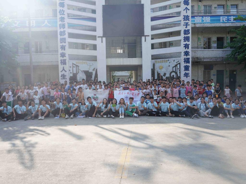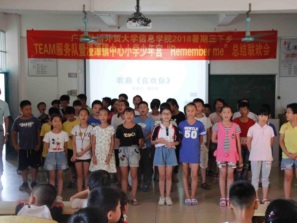 本网讯 7月19日,太阳城娱乐(以下简称“广外太阳城娱乐”)TEAM服务队在来到清远市清新区浸潭镇中心小学的第十天举办了“Remember me”总结联欢会(以下简称“总结联欢会”),本次总结联欢会的目的是向小员工们以及本次三下乡活动做一个正式的道别。出席此次总结联欢会的为广外太阳城娱乐TEAM服务队全体队员。