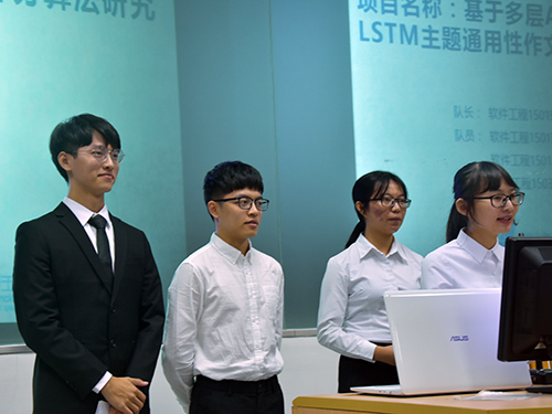 AES队的研究项目“基于多层Attention机制的LSTM主题通用性作文自动评分算法研究”主要针对的是英语作文自动化评分机制。该项目的特色有传统语言学特征抽取、深度学习技术以及主题通用性。技术特色有LDA主题模型、Attention机制、word2Vec等。另外,针对评委的提问“是否能切实解决英语作文中一词多义的问题”,展示者也给出了合理的回答“将LDA主题向量和词向量拼接起来重新训练词向量来解决此问题”。