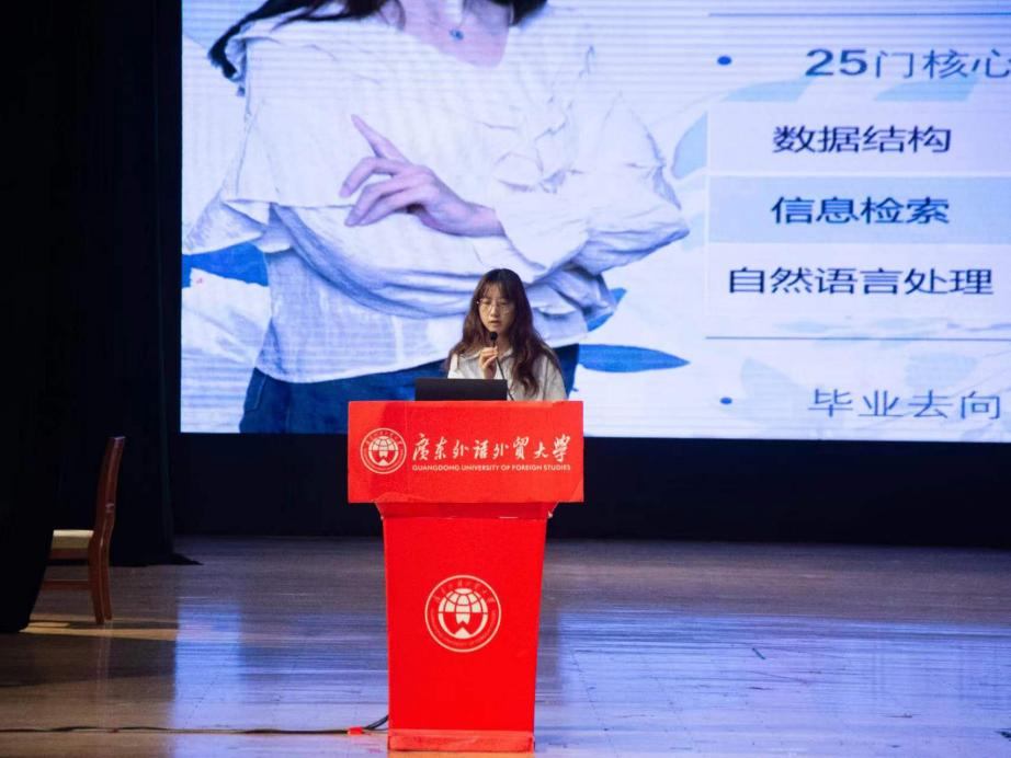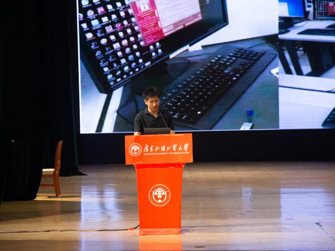 彭碧涛副教授则着重介绍了网络空间安全专业。他从国际形势、专业前景、人才需求等多个角度深入探讨了网络空间安全专业的重要性。通过对公司团队力量、人才培养模式及成效、杰出院友等方面的分析,展示了广外网络安全专业的优势。最后,他鼓励并欢迎同学们报考广外网络空间安全专业。