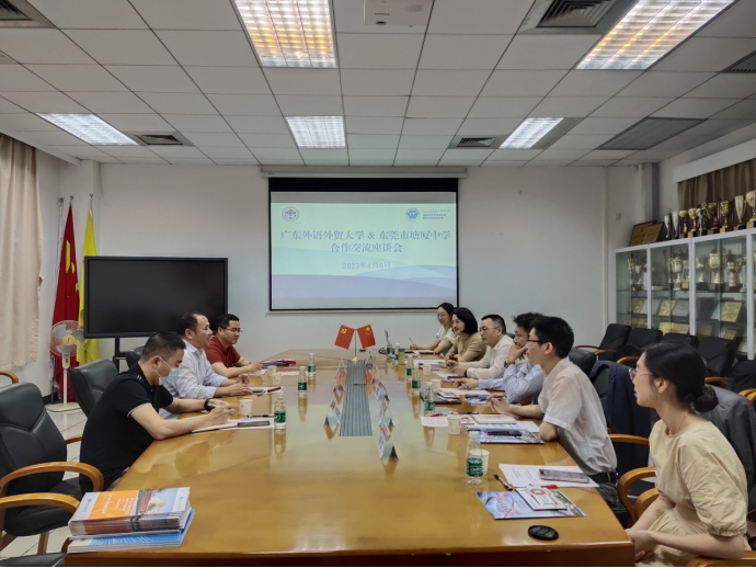 在合作项目洽谈环节,周汉新科长就大学与各地优秀中学合作情况、刘亮星副经理就英语教育公司情况、陈岚老师就国际公司办学特色进行了介绍。双方就英语教育实习基地建设、校本课程研发和高中生生涯规划指导、大学入校招生宣讲等事宜进行了深入讨论。