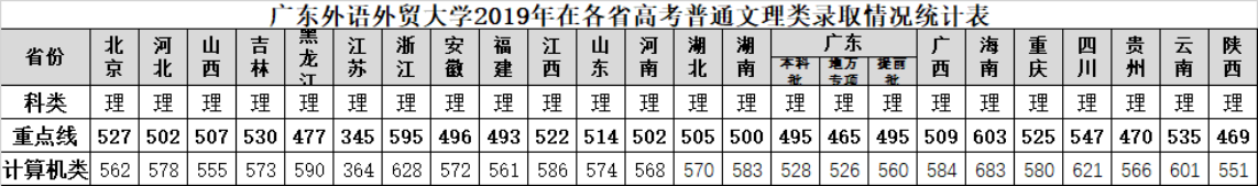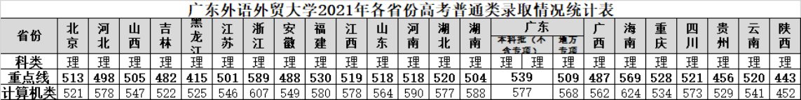 2019-2021年在广东普通类高考录取情况统计表