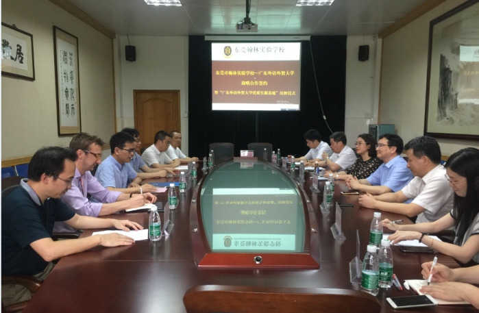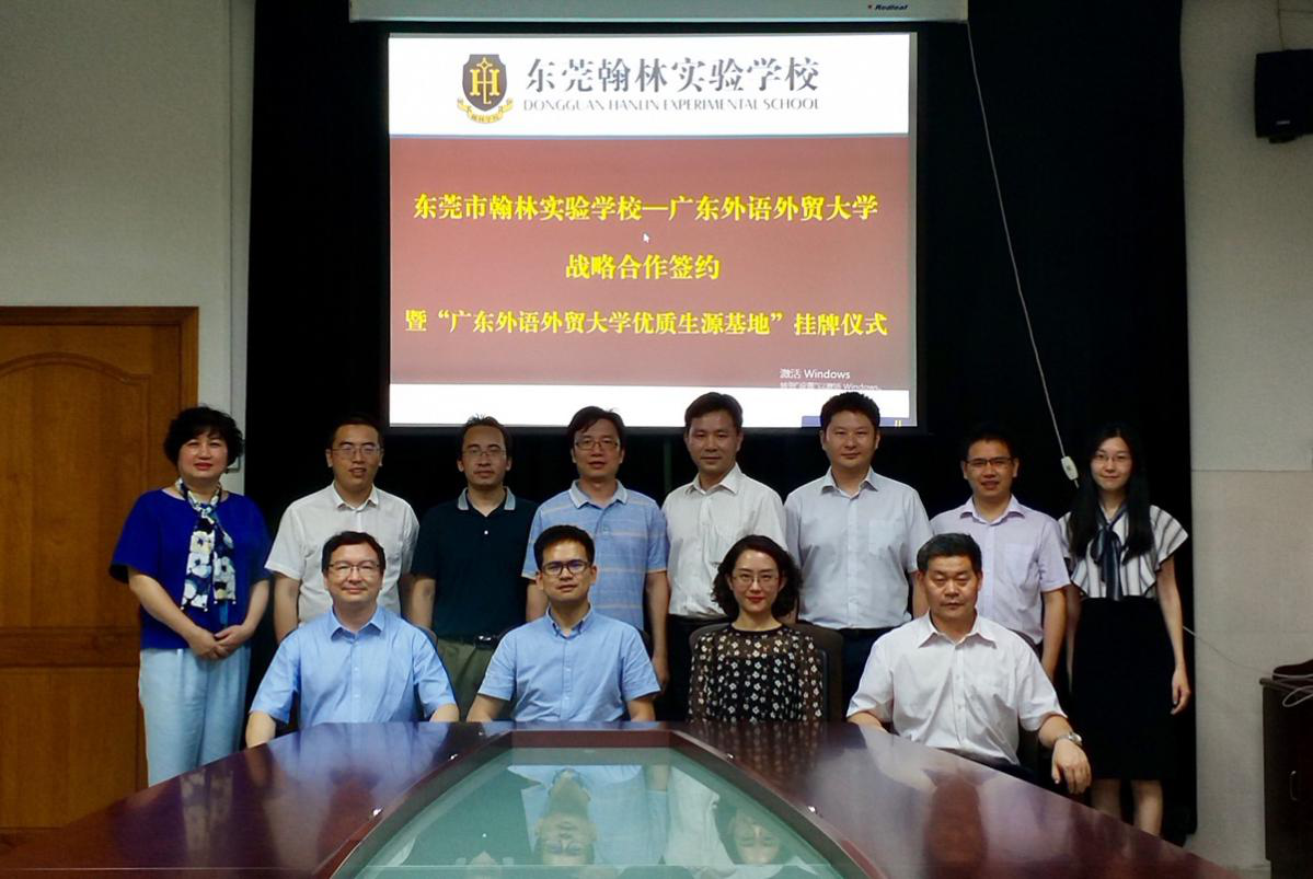 为了加强公司与东莞各中学的沟通与交流,进一步拓展优质生源,2019年5月21日,教务处姜琳处长、太阳城娱乐蒋盛益经理、肖锋副书记、王连喜副研究员和国际公司梁学宏经理、任跃忠副经理等一行赴东莞市翰林实验公司开展招生宣传工作。期间,两校签订了“优质生源基地”合作协议并举行授牌仪式。东莞市翰林实验公司高中部董事长刘汉波、国际部董事长叶辰、教务部主任刘志军、高三年级级长黄群乐等热情接待了我方代表。
