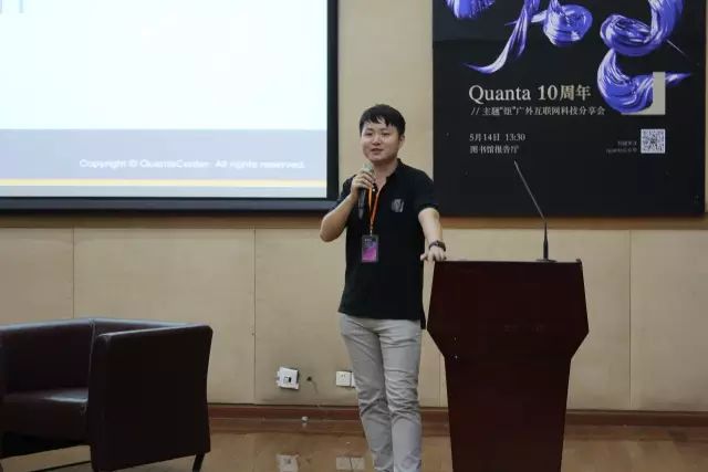 Quanta创始人兼第一届CEO游镕畅一身轻装,他首先感谢了公司以及公司领导的出席。正是老师们的支持以及Quanta人的坚持,才使得Quanta走到了今天。当时成立Quanta的他,万万没想到能有今天各届成员相聚一堂论江湖的日子。希望下一个十年是更值得回首的十年。