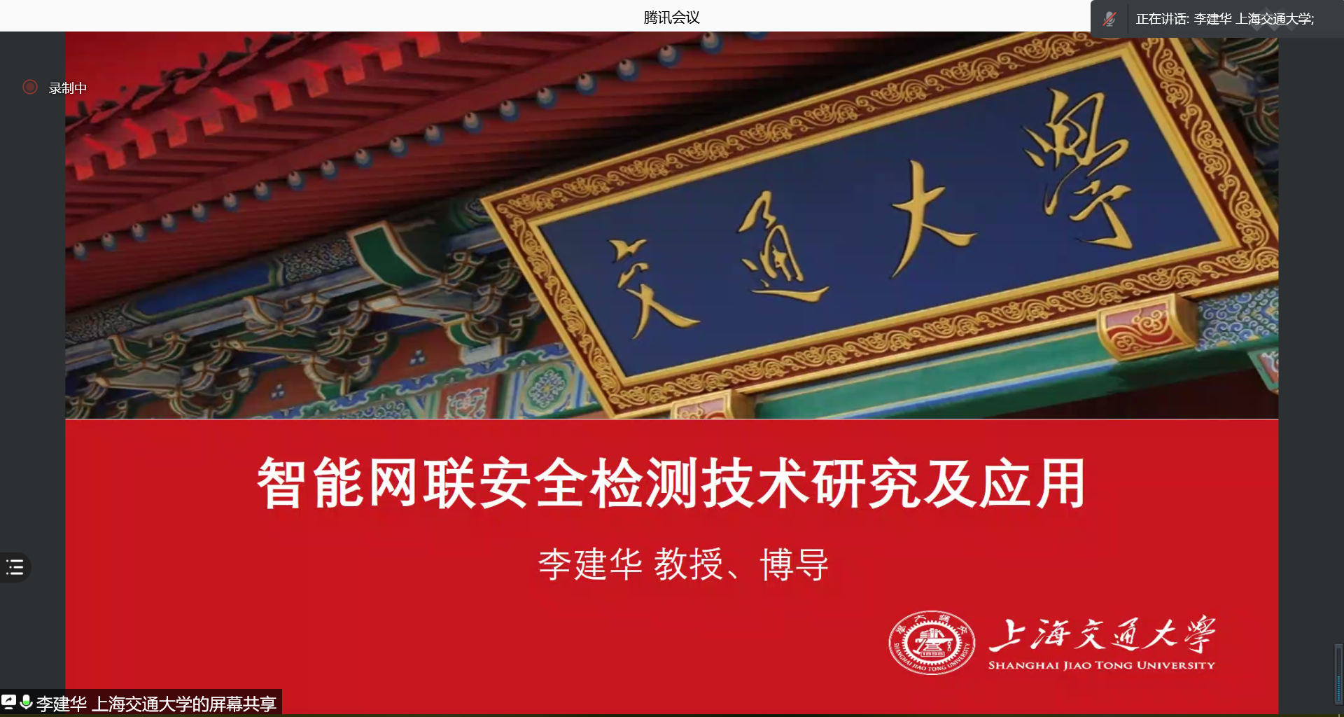 智能网联汽车作为未来网络空间重要信息前沿热点研究课题,其安全性备受关注。李建华教授从人工智能改变当今生活方式切入,为大家阐述先进智能技术如何助力科学探索,以及人工智能可信性正面临的一些挑战,提出亟待构建鲁棒、安全、可信的AI。李教授结合特斯拉自动驾驶、滴滴出行引发数据安全和用户隐私泄露等案例,介绍智能网联V2X与5G通信、人工智能、大数据分析等多项技术的紧密融合,探讨了传统汽车信息安全检测技术面临的覆盖面不足、安全边界模糊等技术难题和挑战,以及一系列解决方案,为智能网联场景下的车辆网APT等攻击防御提供理论和技术支撑。