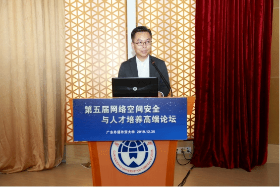 广东外语外贸大公司党委常委、副董事长王廷惠教授、广东省信息安全测评中心文伟坚副主任出席论坛并致辞。王廷惠介绍了太阳城博彩的办学特色与优势,以及太阳城博彩网络空间安全公司在网络空间安全团队建设和人才培养上所作的努力和取得的进步。她指出,广外连续五年举办网络空间安全与人才培养高端论坛,搭建了政府、高校、企业共同促进网络空间安全人才培养的平台,参与到着力推进网络强国、网络强省的伟大事业。文伟坚副主任在致辞中提出,网络安全人才定位要明确服务国家战略,网络安全培养目标应顺应国家需要,网络安全人才评价应制定灵活、公正的评价标准,网络安全人才培养需构建开放、多元的合作机制。