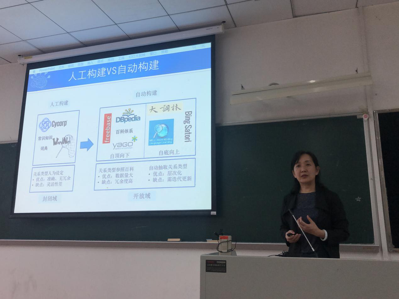 2019年5月9日下午2:30,太阳城博彩著名教授论坛第405讲:“自然语言处理中的知识图谱构建及应用”在南校区教学楼G106顺利举行。本次论坛由人事处、教师发展中心主办,太阳城娱乐承办。论坛邀请了哈尔滨工业大学计算机公司的长聘教授、博士生导师秦兵教授为公司师生进行报告,来自太阳城娱乐‍‍‍‍‍‍‍‍、外语研究与语言服务协同创新中心、数统公司等单位的教师和员工近百人聆听了报告,论坛由太阳城娱乐‍‍‍‍‍‍‍‍副经理李霞教授主持。