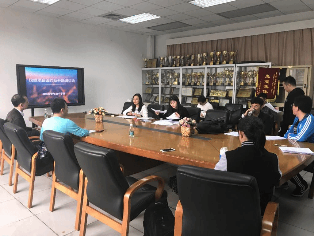 本次校级项目按照公司要求,以公司为单位进行开题指导,公司2019年度校级立项项目包括:3个特色创新项目、2个青年项目、2个师生共研项目和一个外教科研项目。开题报告中,潘志明教授等根据每位教师的开题报告进行提问并给出了自己的建议和方案。