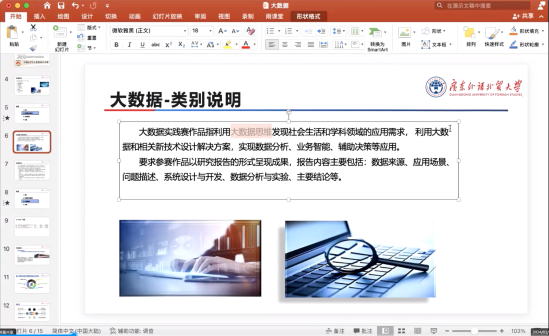 在信息类作品讲解分享板块,申宇铭教授对人工智能应用类别进行深入剖析,他启示同学们在进行作品创作时可以与当下最先进的人工智能技术相结合,若有相关论文、专利或软著作支撑效果更佳。张新猛副教授讲解了软件应用与开发大类中5个小类的要点,结合优秀作品进行分析,提醒同学们在创作时注意创新融合、充分利用现有资源。姜思羽博士对大数据应用类别进行了说明,启发同学们在作品创作时要善于总结与展望、体现出作品的前景。对于微课与教学辅助类别,李穗丰老师强调在作品创作时要注意教学环节设计、素材选择应用的规范性等,并启示同学们可以在各大平台上搜索往届优秀作品分享进行学习。在物联网作品方面,巩文科老师希望同学们可以结合日常生活发掘创作点,并欢迎对该赛道感兴趣的同学们积极沟通交流。李宇耀老师补充道,物联网是将虚拟直接与物理真实世界结合的有力途径,广东省当前重点建设的“百千万工程”中,有许多需要将创意与真实乡村建设需求相结合的创新空间,鼓励同学们挖掘物联网在其中的应用。最后,任函副教授着重分享了信息可视化设计类别的两个优秀作品,从作品出发对评审标准、创作要点进行了详细分析。