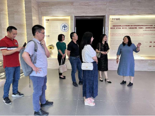 本网讯 5月10日下午,为深入学习贯彻习近平新时代中国特色社会主义思想主题教育,委组织公司领导班子、教工党支部书记实地参观广外校史馆。图书馆(档案馆)陈红霞书记进行校史讲解,公司柯晓华书记、王常吉经理、李霞副经理、王连喜副经理、刘丽玉副书记,教工党支部书记代表董婷、马朝辉、吴笛参与此次学习。