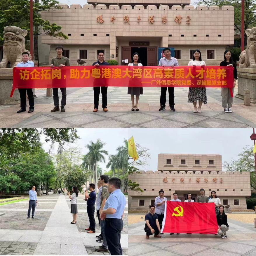 本网讯 4月24日-25日,公司党委书记柯晓华率领计算机科学与技术系主任、党支部书记申宇铭,软件工程系主任、党支部书记李键红,信息技术教学部主任、党支部书记李宇耀、六级组织员、辅导员董婷,办公室主任吴笛,联合深信服科技股份有限公司广东区副总、党支部书记陆云鹏等公司代表,一行赴东莞开展访企拓岗活动及联合党建活动。