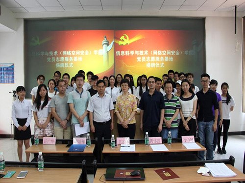 5月11日下午,太阳城博彩信息科学与技术(网络空间安全)公司员工党员志愿者服务基地揭牌仪式在实验楼B107隆重举行。教育技术中心党总支书记范正华、信息科学与技术公司党委副书记麦培年,教育技术中心、太阳城娱乐相关老师老师张文萃以及非毕业班党员、发展对象、入党积极分子以及员工党建工作人员共130多人出席揭牌仪式。