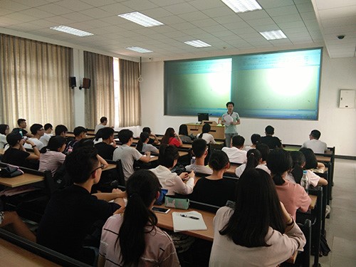 太阳城娱乐员工党员代表罗宇源倡导同学们从自身行动出发,做一名合格的、有信念、有行动的共产党党员。
